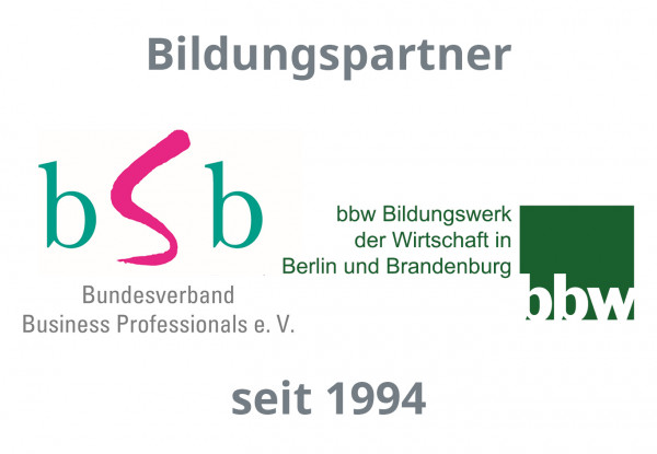 Seit 1994 sind wir bereits Bildungspartner des bSb, dem Berufsverband, der sich u. a. die Qualifizierung von Office-Mitarbeiterinnen und Mitarbeitern auf die Agenda geschrieben hat.