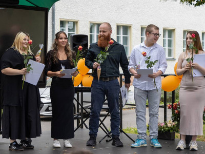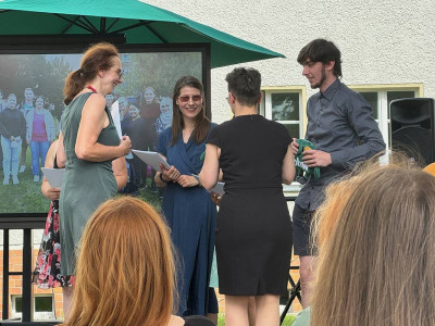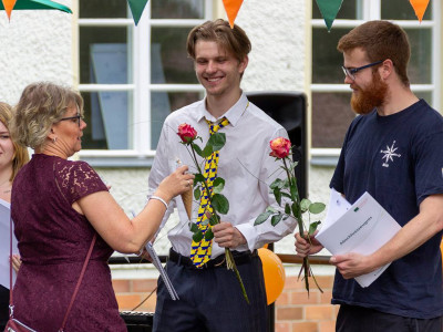 Auch die berufsbegleitende Erzieherklasse FS P19 hat ihre Ausbildung erfolgreich abgeschlossen und verlässt unsere Schule mit Arbeitsverträgen in der Tasche. Einige Absolventinnen und Absolventen werden uns besonders in Erinnerung bleiben, da sie maßgeblich zum Erhalt unseres Titels "Schule mit Courage" beigetragen und sich in unserer Ini-Gruppe außerordentlich engagiert haben. Unser besonderer Dank gilt hier Frau Friedrich und Frau Poltier.