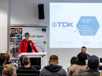 In diesem Rahmen lernten die Teilnehmenden nicht nur die Tätigkeitsfelder der Optik und der Elektronikfertigung kennen, sondern erfuhren auch etwas über die Anforderungen der kooperierenden Unternehmen ASML und dopa Diamond Tools aus dem Bereich Optik und AEMtech, TE/First Sensor, EPIGAP OSA, Microchip, TDK und Ferdinand-Braun-Institut aus dem Bereich Elektronikfertigung.